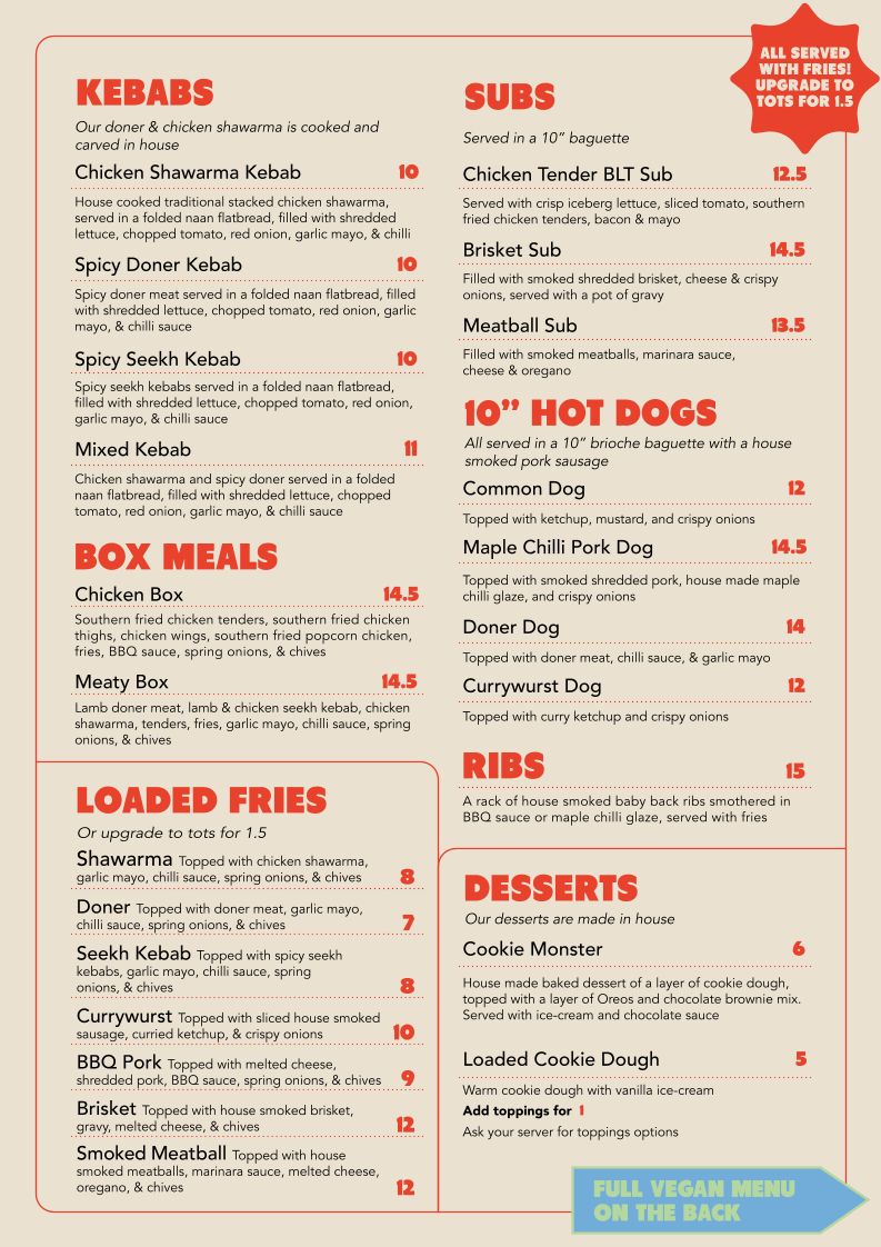 The Loaded Fries are another highlight, with varieties like Shawarma, Doner, and Beef & Lamb Koftas, all generously topped and priced around £7 to £8. Each dish promises layers of flavor that will keep you coming back for more. And don’t overlook the desserts! The Cookie Monster is a house-made delight with layers of cookie dough, Oreos, and chocolate brownies, served warm with ice cream—pure indulgence for just £6.